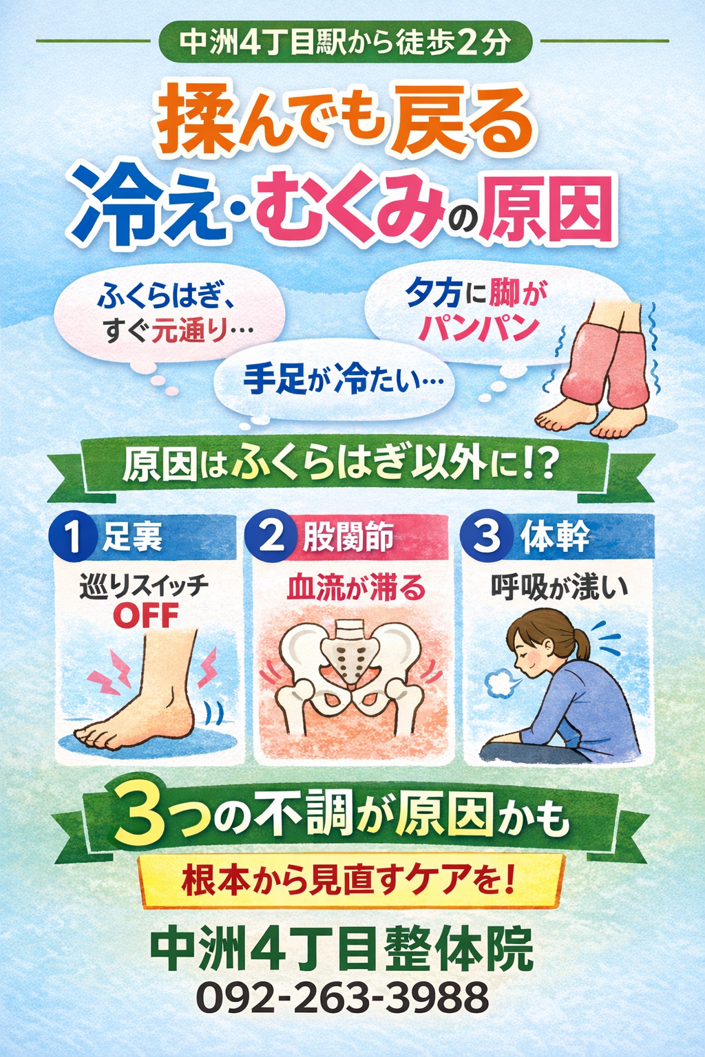 中洲川端|揉んでも戻る冷え・むくみの原因