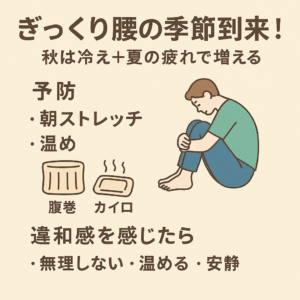 理由:気温差で筋肉が冷える+夏の疲れが残ったまま動き出す