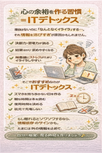 たまには外の情報を止めて、自分の感覚に戻る時間を作りましょう。