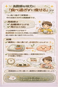 満腹感を上手に使って、無理なく減量を続けましょう。