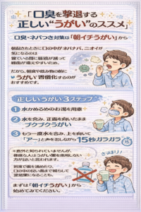 だから、朝食や飲み物の前に“うがい”を習慣化するのがおすすめです。