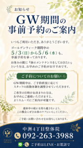 ご予約についてのお願い GW期間中は、